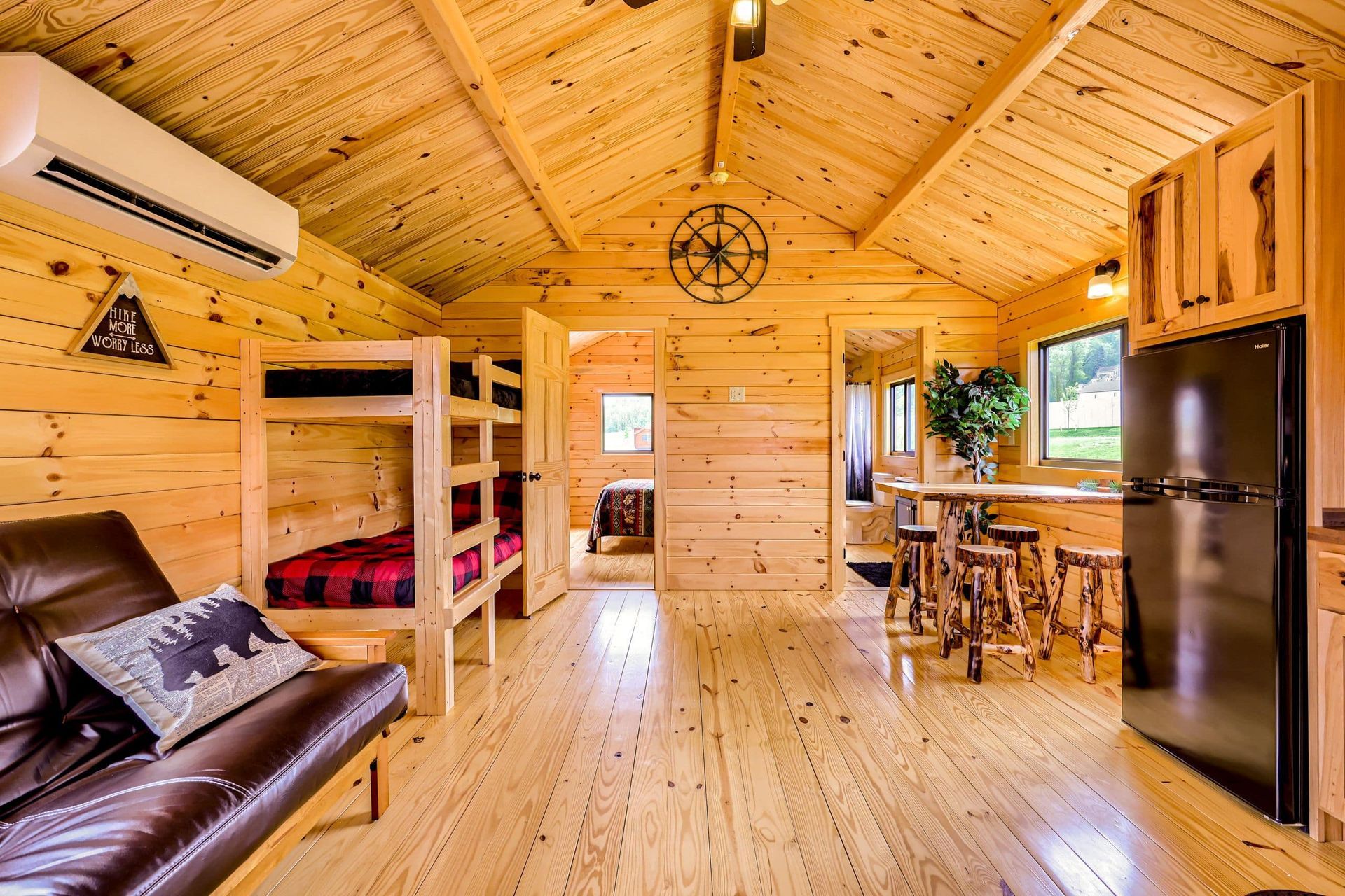 We also have amazing lodging here on property. We boast hotel style rooms, group lodges, modern cabins, RV spaces, and rustic cabins for any style of overnight adventure.