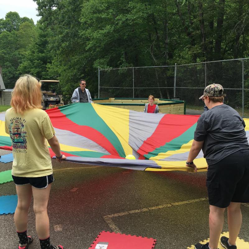 Thanks to their work, the campers have a new ADA Walkway, a new swing, a beautiful painted recreational court, and a new Sensory Trail, among other things.